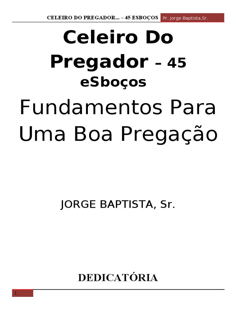 Esboço sermão pregação - → ESBOÇO DE PREGAÇÃO